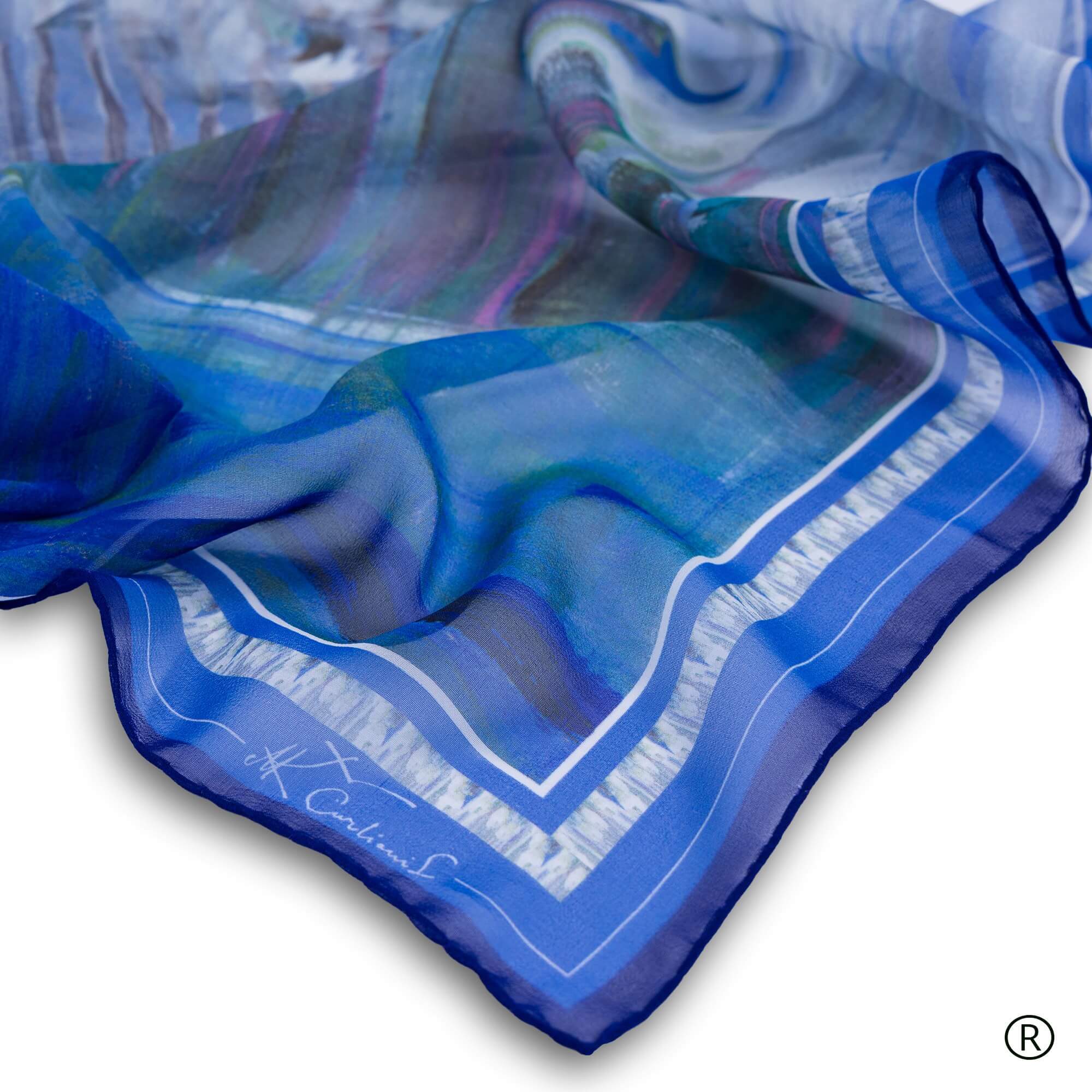 Dėl spaudos, audinio kokybės, apsiuvimo ir originalaus dizaino šias skareles drįstame vadinti prabangiomis, vertomis M. K. Čiurlionio vardo ir kūrybos.