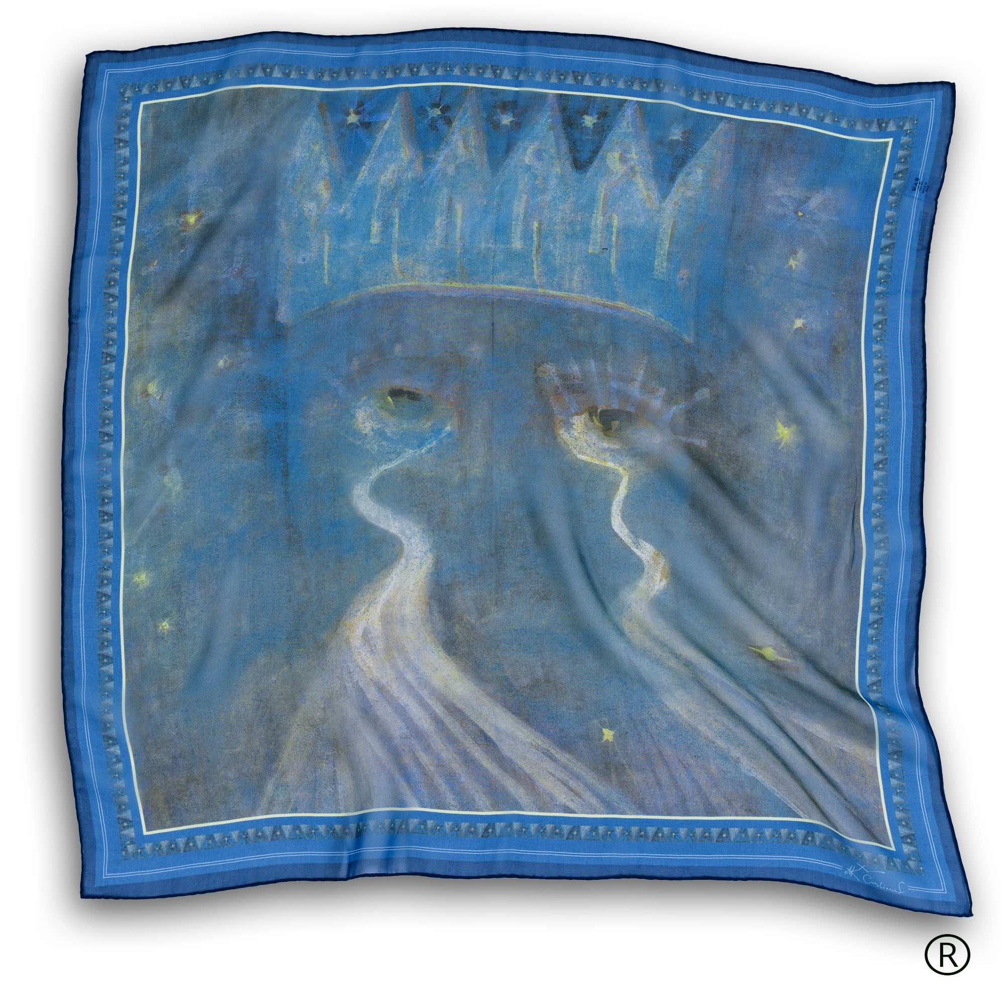 Originalaus, registruoto dizaino natūralaus šilko žoržeto (georgette)  skarelė su M. K. Čiurlionio paveikslo „Amžinybė” atvaizdu.