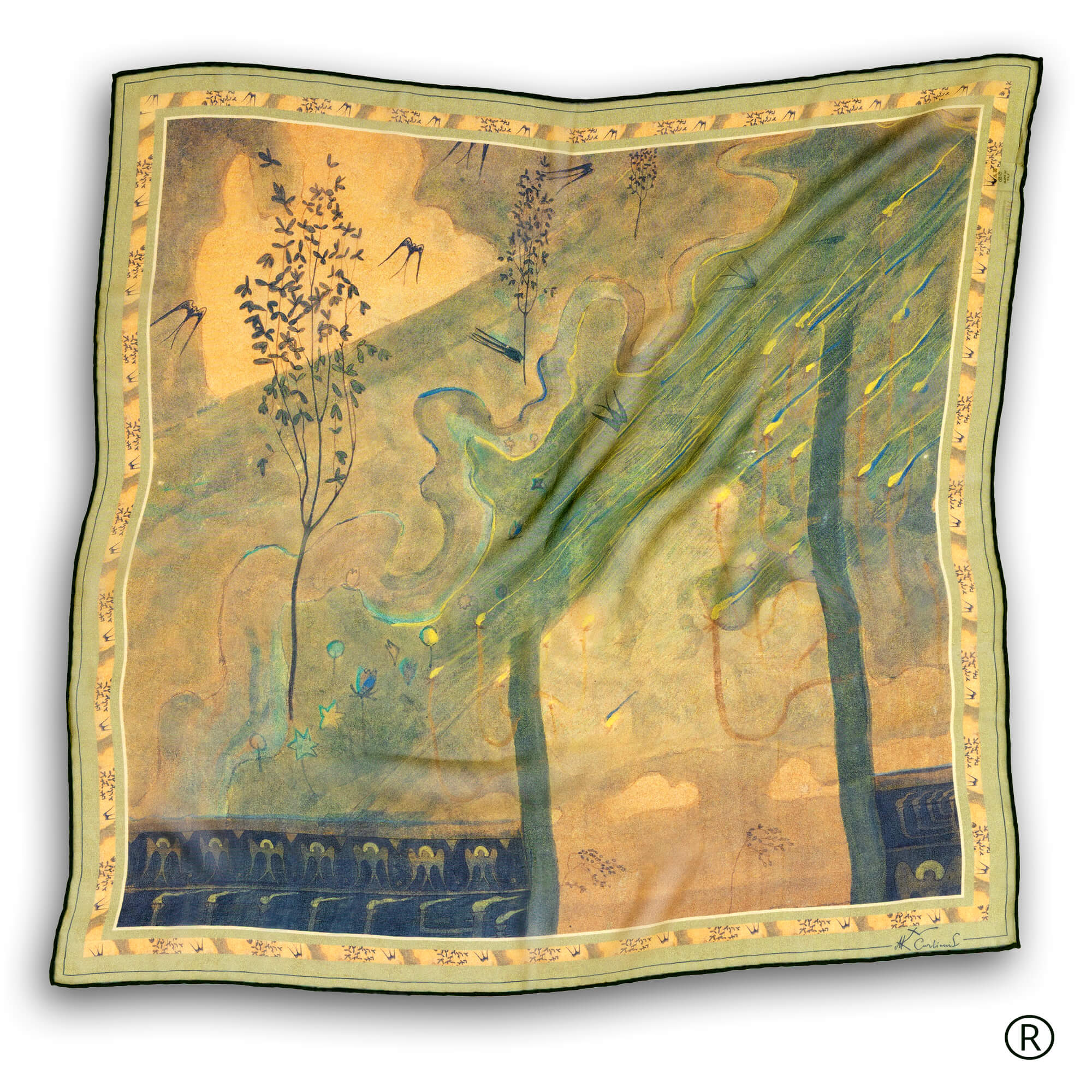 Bendradarbiaujant su Nacionaliniu M. K. Čiurlionio dailės muziejumi, sukūrėme šilkinę skarelę su M. K. Čiurlionio paveikslu „„Sonata II (Pavasario sonata)““.