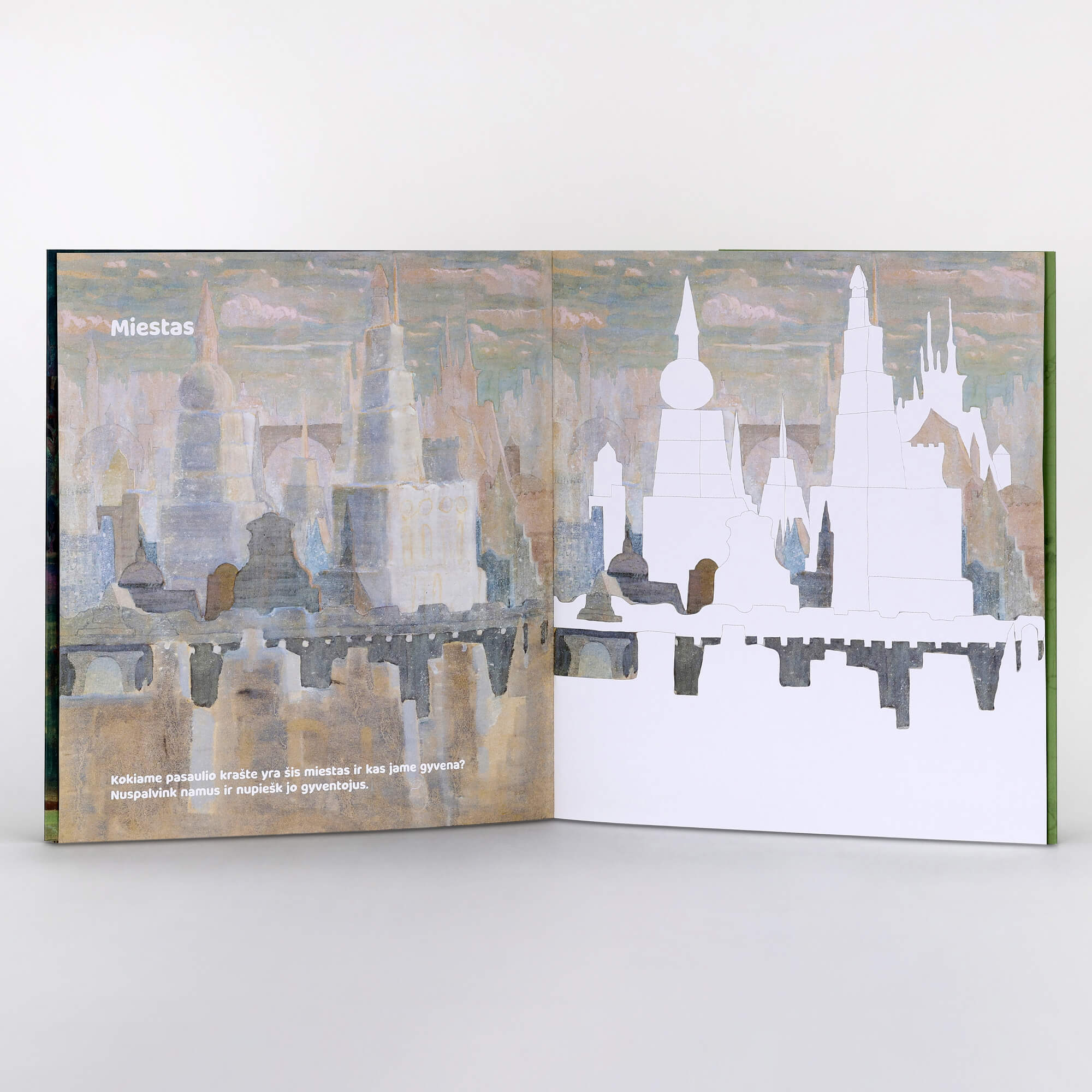 Joje daug vietos spalvinimui, piešimui ir kūrybai. Vaikai kviečiami tarsi užbaigti paveikslus, nes kai kurios jų dalys paliktos nuspalvinti. Knygelėje naudojamos originalių paveikslų reprodukcijos, todėl mažieji mato, o ateityje tikrai atpažins dailininko darbus.